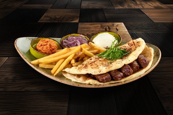 Ćevapi u lepinji od 100% junećeg mesa, urnebes, kajmak i pomfrit